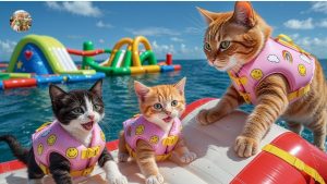 The mother cat and her kittens went to the beach and were attacked by a shark 🎋🍜🐱