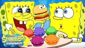 Was brutzelt auf dem Grill und wird in der Krossen Krabbe serviert? Na klar, Krabbenburger! Hier sind die leckersten Krabbenburger, die SpongeBob je gebraten hat....