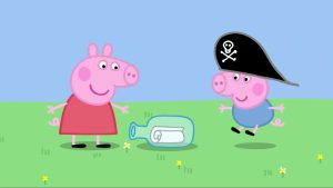 It is a rainy day but Peppa doesn’t mind – her garden is full of lovely, muddy puddles. Peppa gives him LOTS of exercises to do. But they like playing computer games more… The family visit a museum. Peppa likes the room with things from Kings and Queens of long ago. George loves the dinosaur…